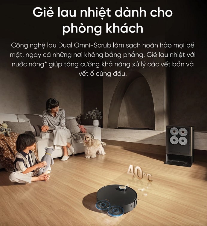 Lau Sát Cạnh Tuyệt Đối (MopExtend™ & SideReach™): Đảm bảo robot làm sạch sát tường và góc hẹp, xóa bỏ vùng mù truyền thống.