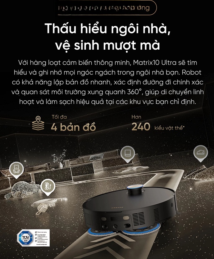 Trong phân khúc robot hút bụi lau nhà cao cấp, Dreame Matrix10 Ultra là một siêu phẩm đột phá, được trang bị những công nghệ tiên tiến nhất, khẳng định vị thế dẫn đầu của Dreame trong việc tự động hóa và tối ưu hóa quá trình vệ sinh nhà cửa.