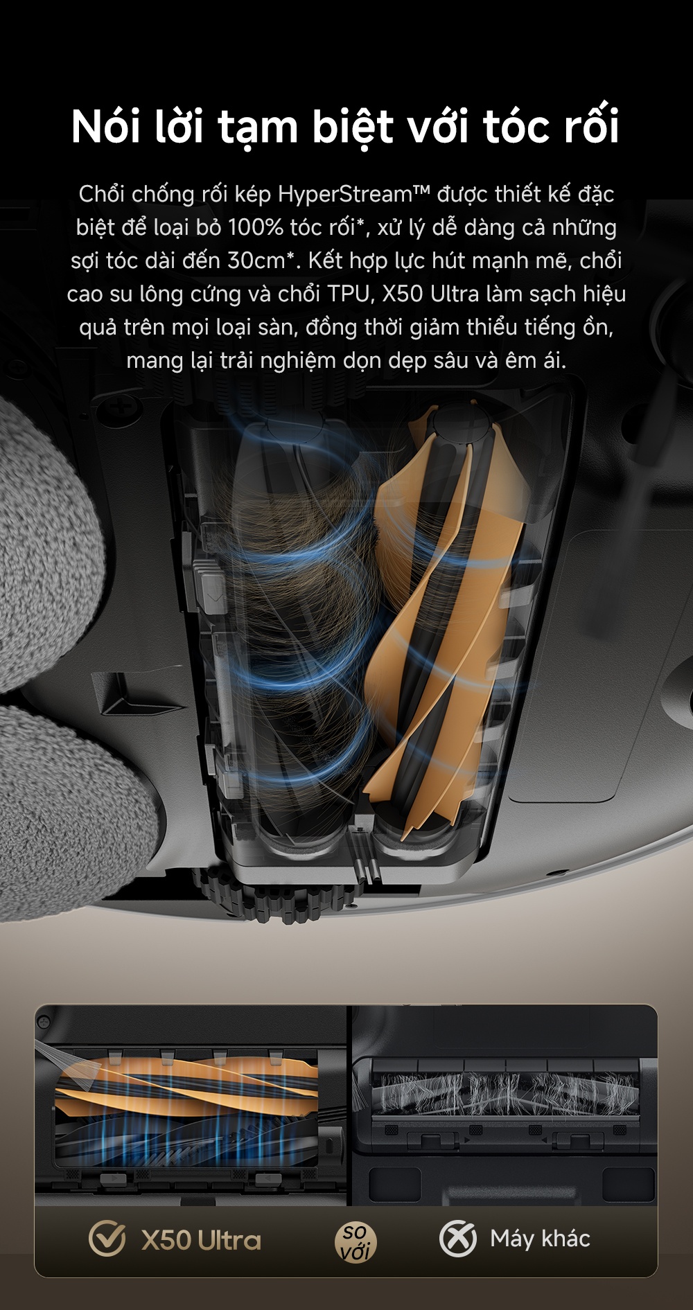 • Thiết kế bàn chải cạnh tránh xoắn,không mắc tóc, không kẹt máy