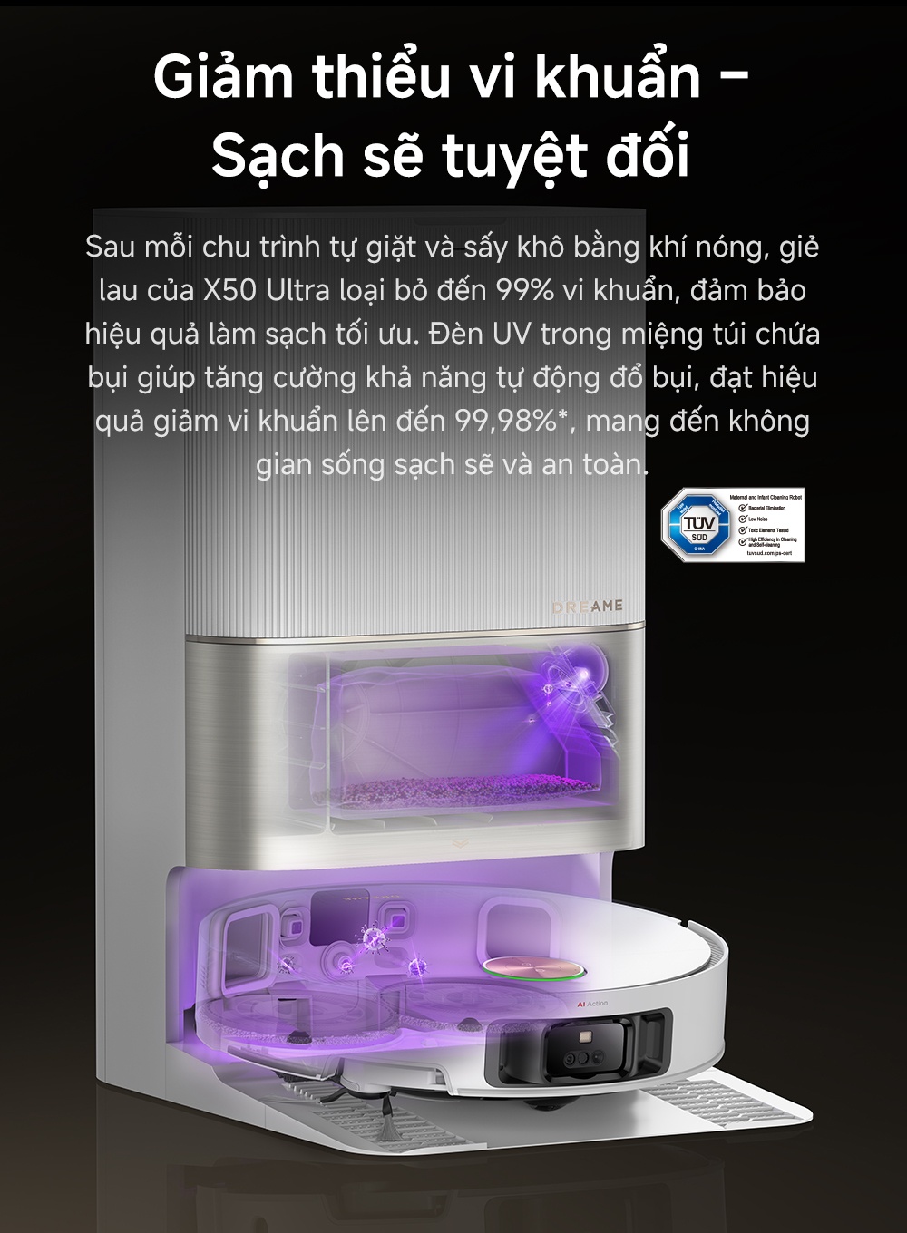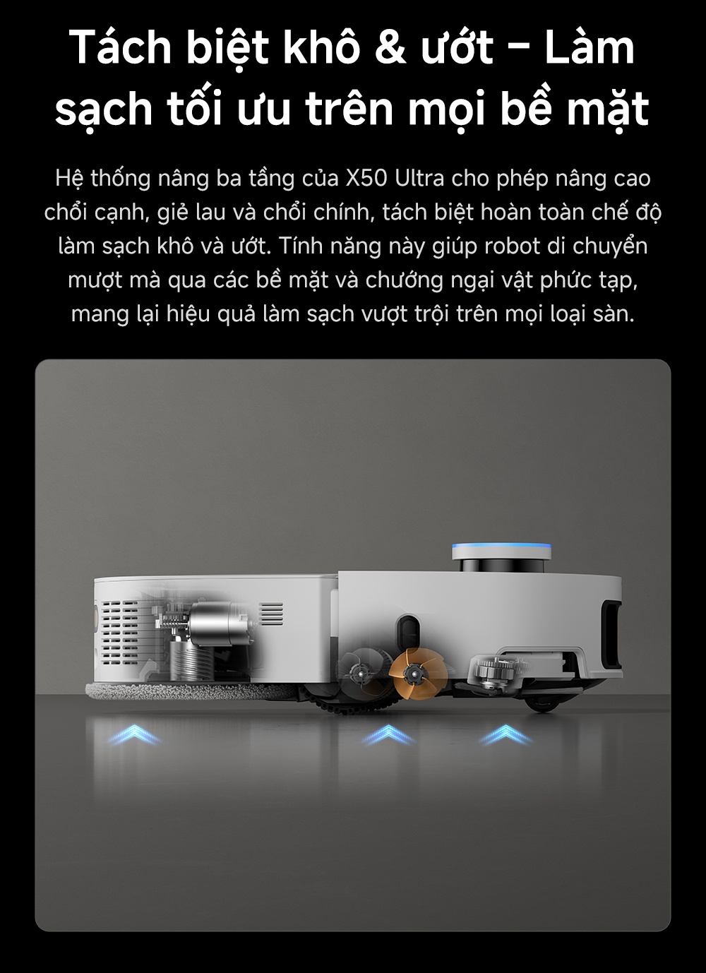 • Tháo lắp tự động giẻ lau, thiết kế khô và ướt tách biệt thực sự