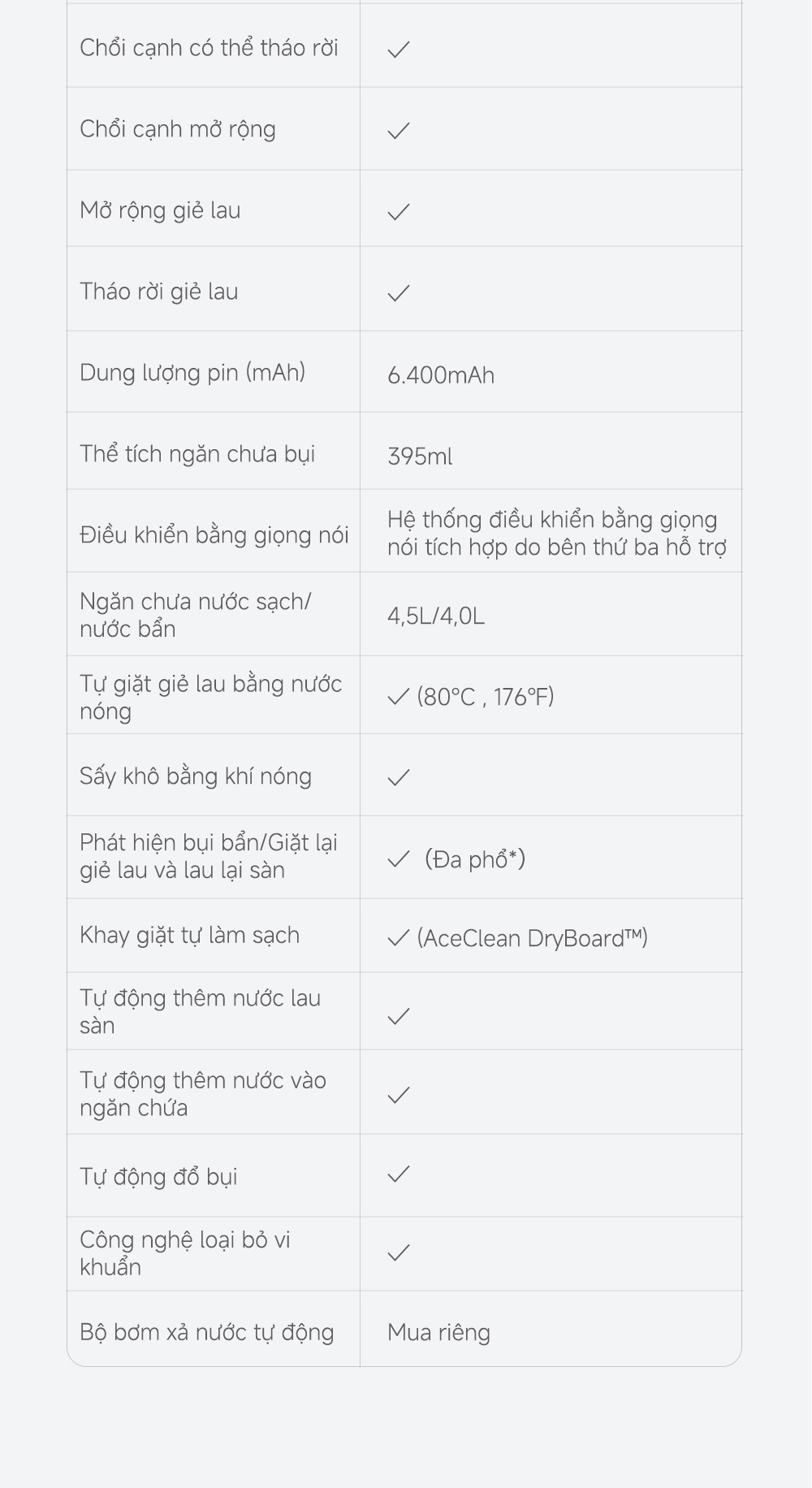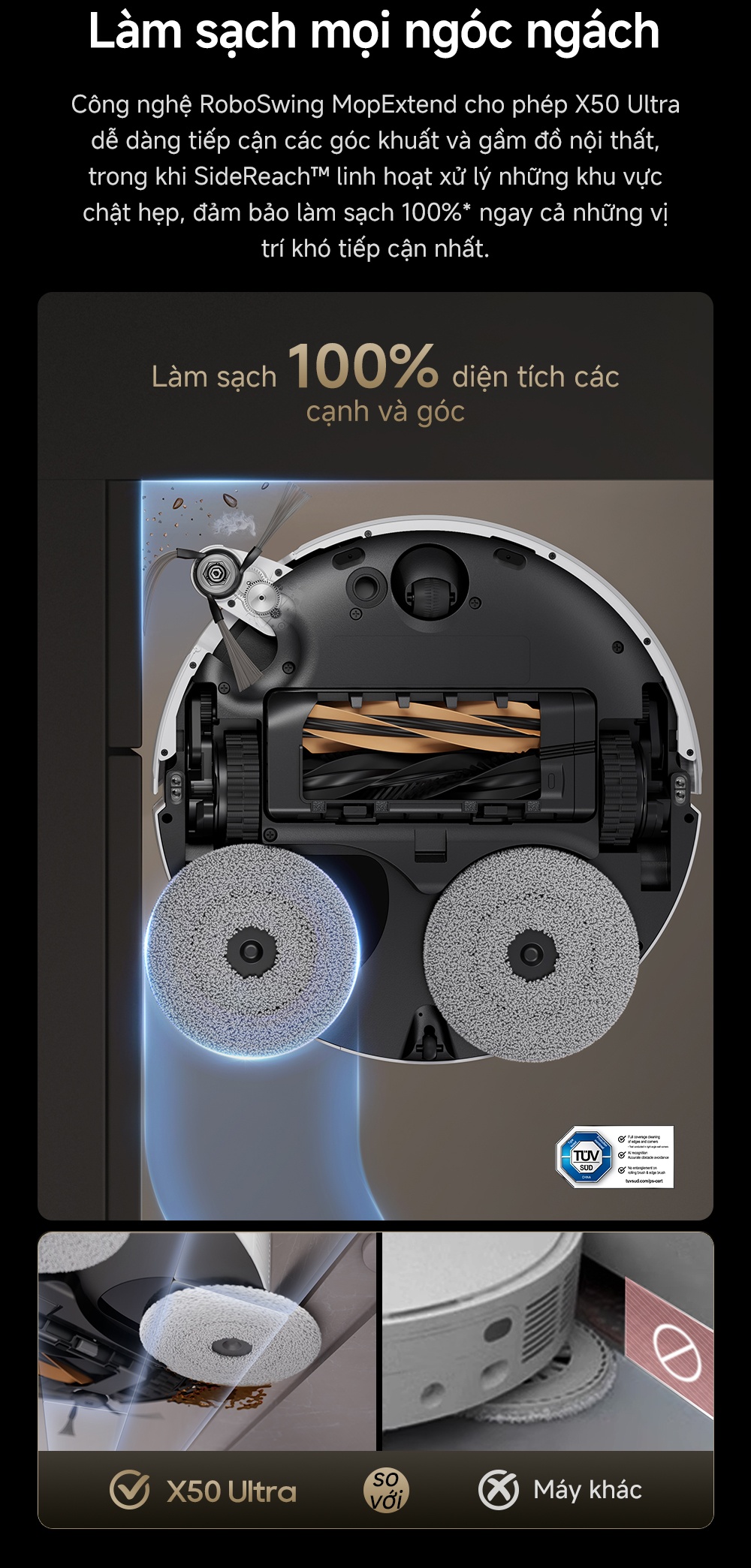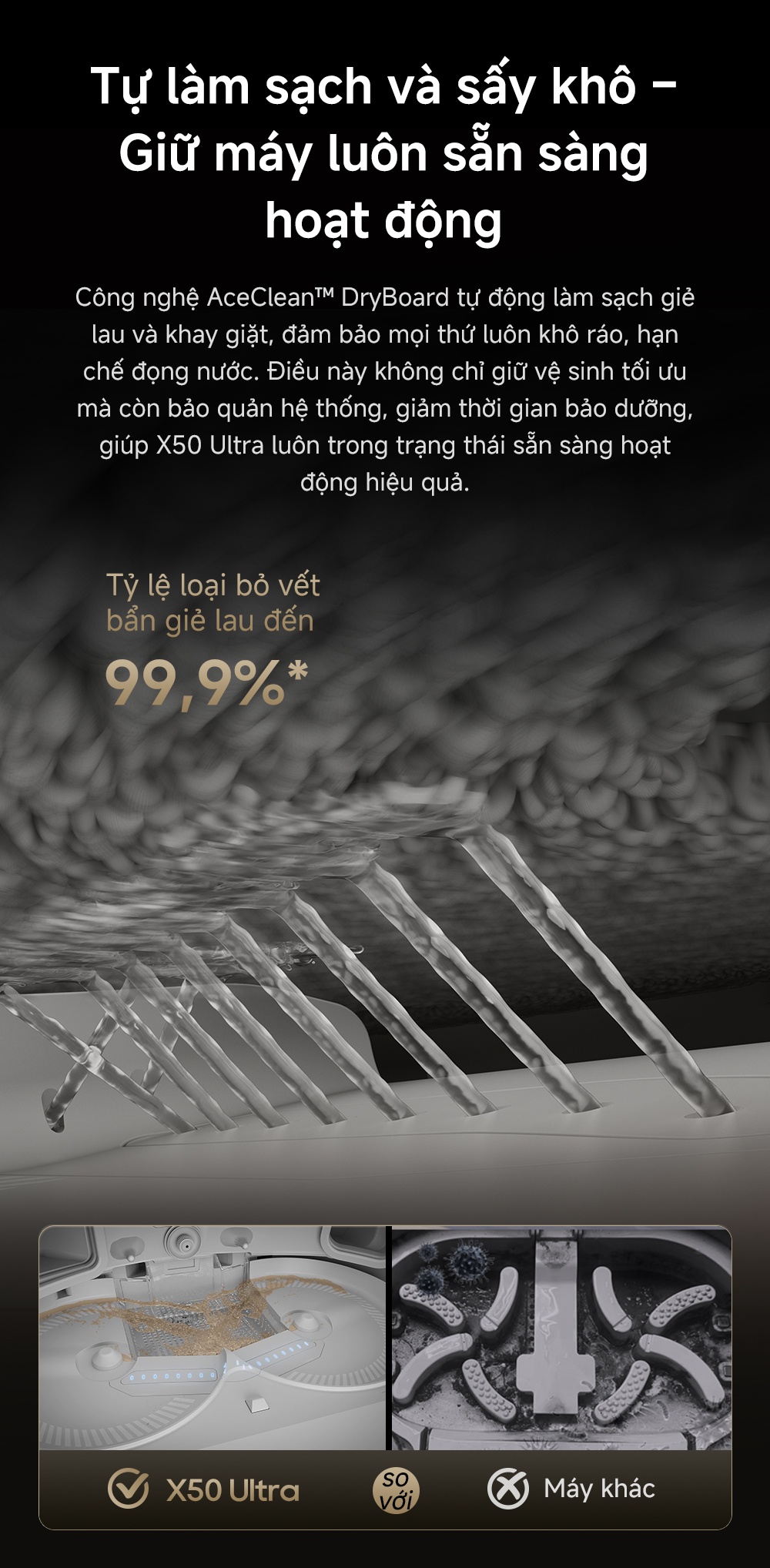 • Giẻ lau mô phỏng sinh học 3.0 ,xâm nhập khe hở thấp 4cm